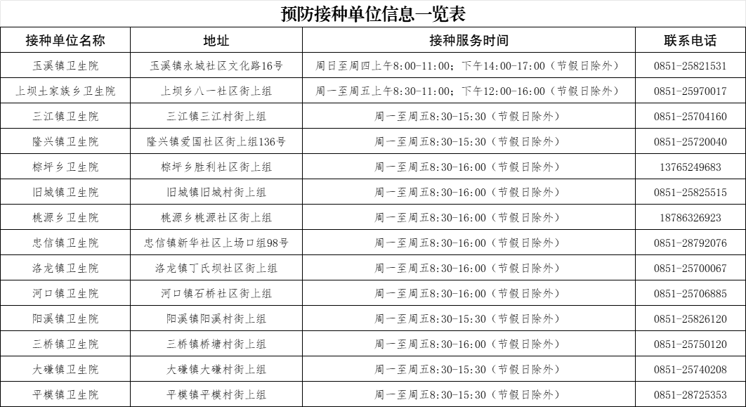 道真自治县将在各乡镇卫生院接种门诊
