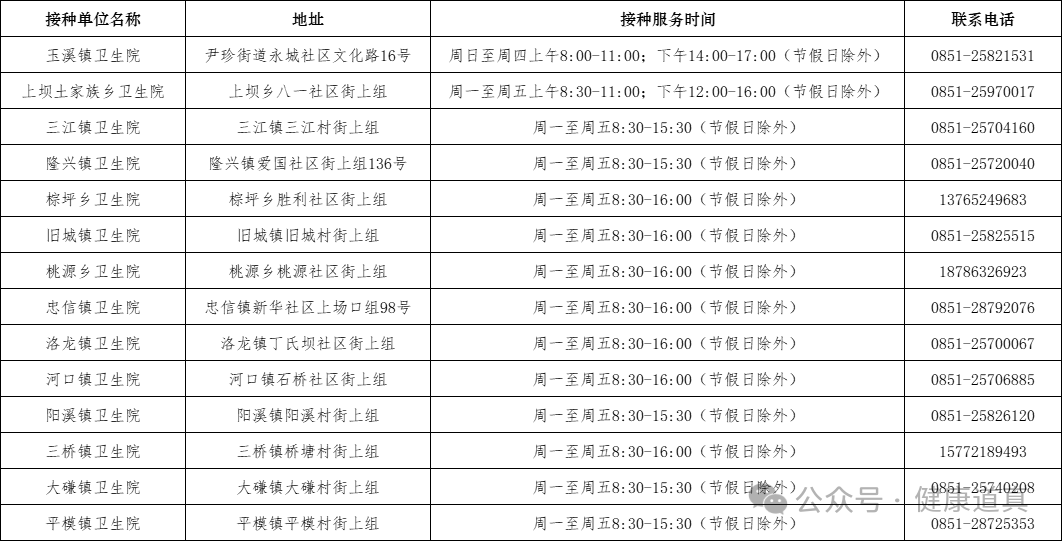 道真自治县预防接种单位信息一览表